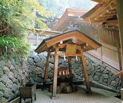 神社の入り口にある手洗い場で僕が水を汲もうとしたら