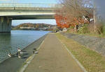 いつものランニングコース。穏やかそうに見えて強風吹いています。