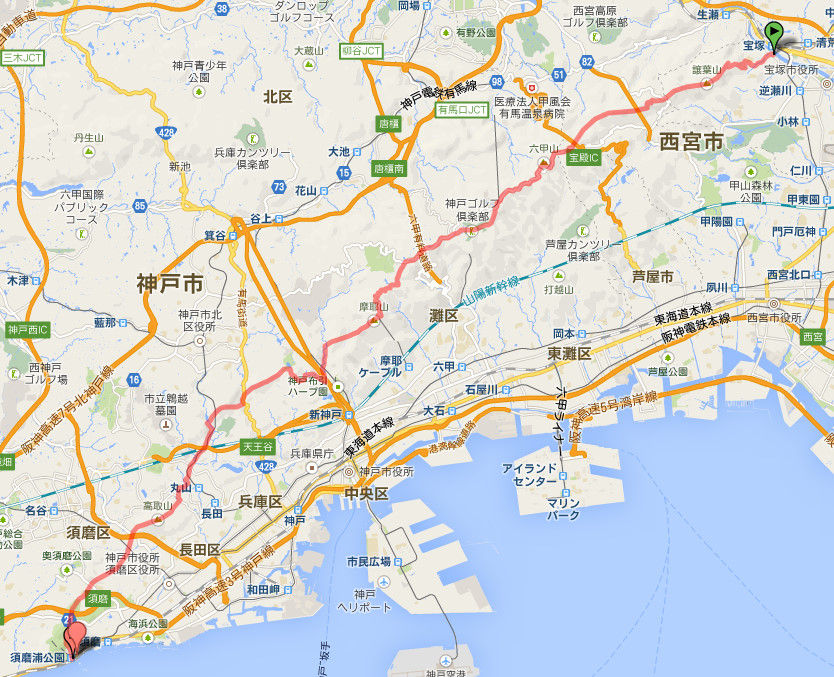 朝の5時に須磨を出発して夜の9時過ぎに宝塚の湯本着と総時間が16時間と聞いた