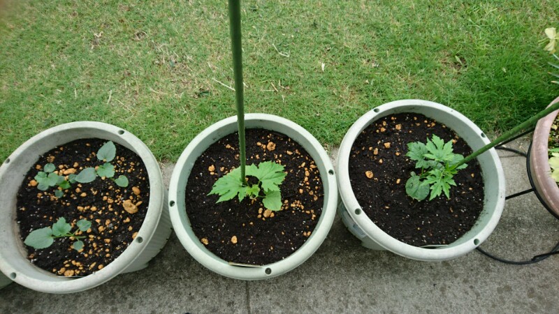 日焼けした肌のケアに、ビタミンC含有量の高いゴーヤを今年も植えました。