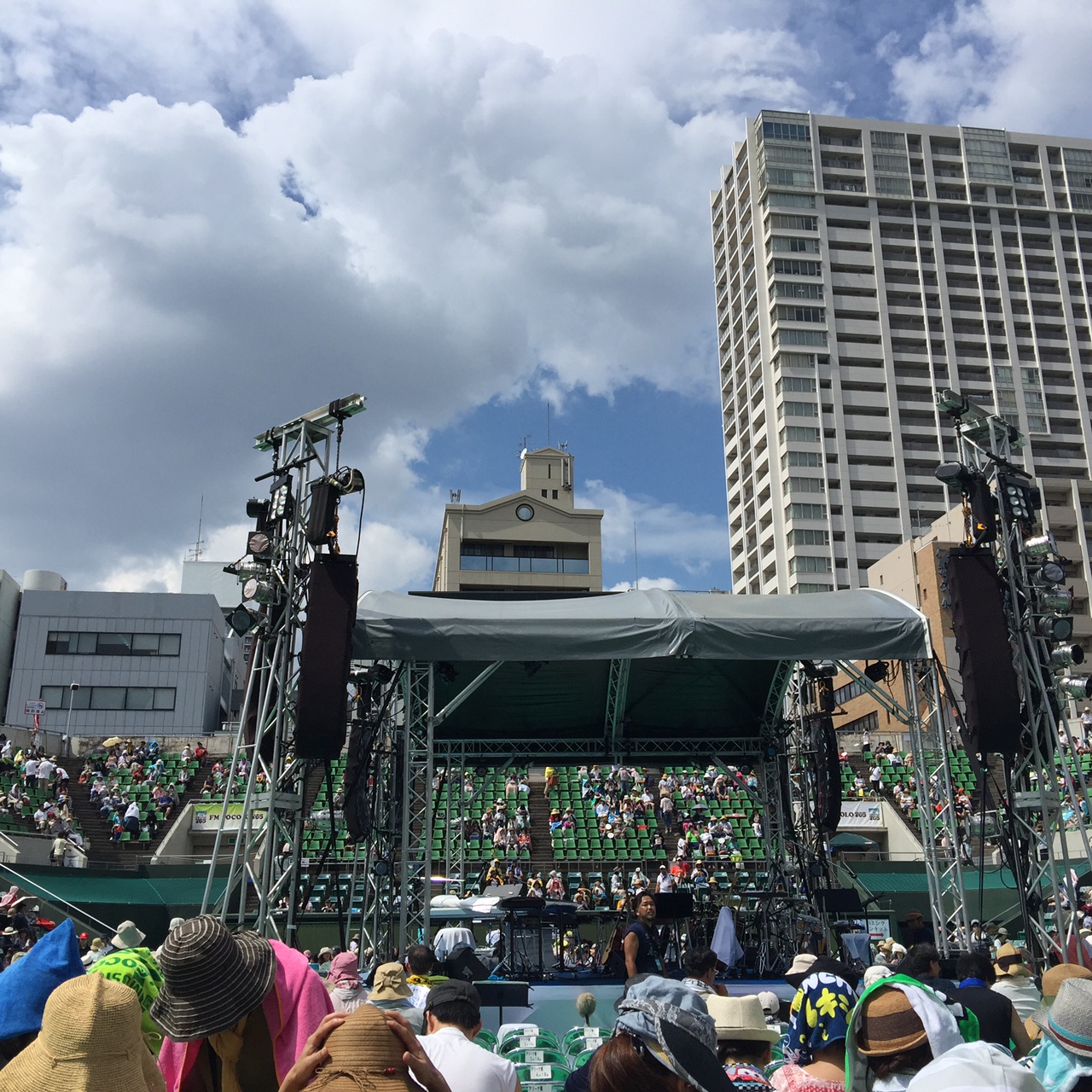 実はその翌日に靱公園テニスセンターで真夏の炎天下、野外ライブがあり