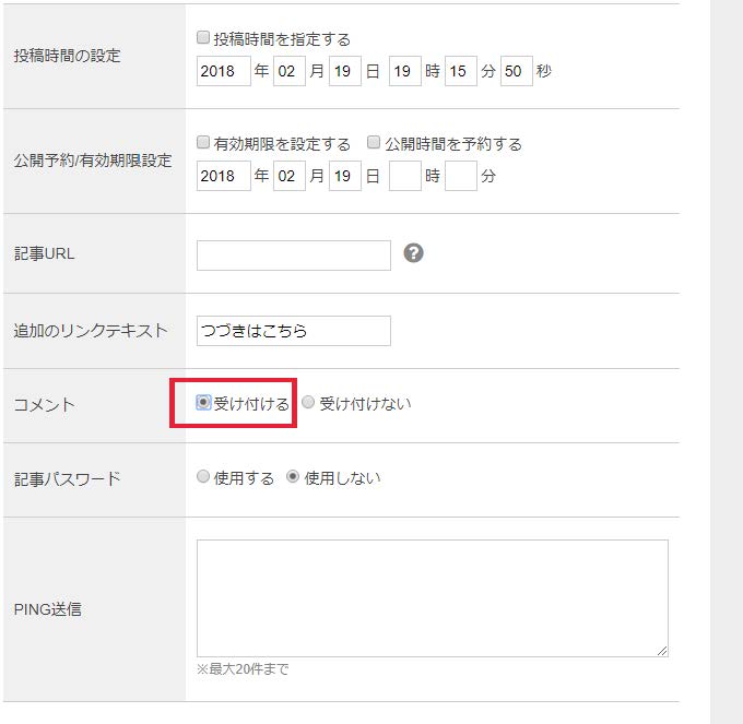 これはブログをアップする際にコメントを受け付ける、受け付けない