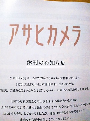 さてお次は本ではなく雑誌ですが「アサヒカメラ」。