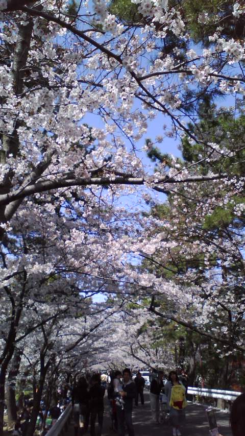 携帯カメラなので少しわかりにくいですがさくらの枝が道路に覆い被さるように