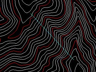 等高線に交差するように2点を選択します。