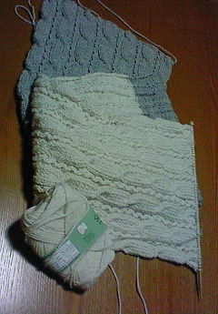 編みたい衝動真っ只中だったので、同じ種類の残っていた色違いをつないで編み続けました。今冷静になって「そこまでして編まんでも・・・」と思うのでした。