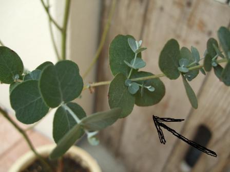 ユーカリの葉っぱが、この枝だけ3枚ずつ生えてくる!!