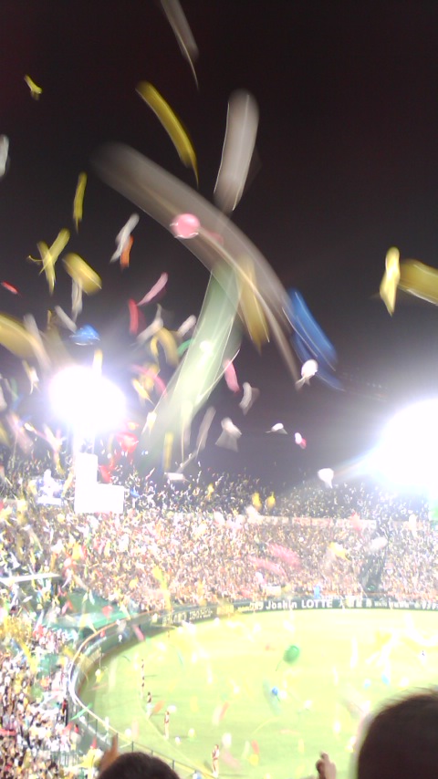 ほとんどの阪神ファンは帰らず、鳴り物応援禁止(午後10時以降)になっても