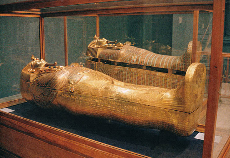 ツタンカーメンのミイラをこの黄金の棺に入れさらに同じものを2つ重ねて埋葬