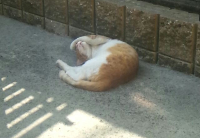 ↓ 半年前に我が家の坪庭でくつろいでいた猫が