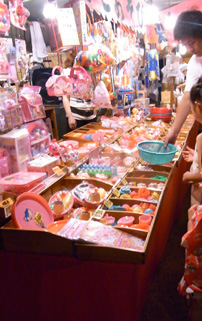 かき氷、綿菓子、お面、リンゴ飴、ベビーカステラ、からあげ、お好み焼き、イカ焼き、タコ焼き、金魚すくい、射的…たくさんの露店を見ているとウキウキします。童心に返るとはこのことでしょうか。