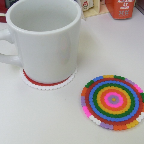 会社のコップ置きと水筒置きにと、作ったものをもらいました。