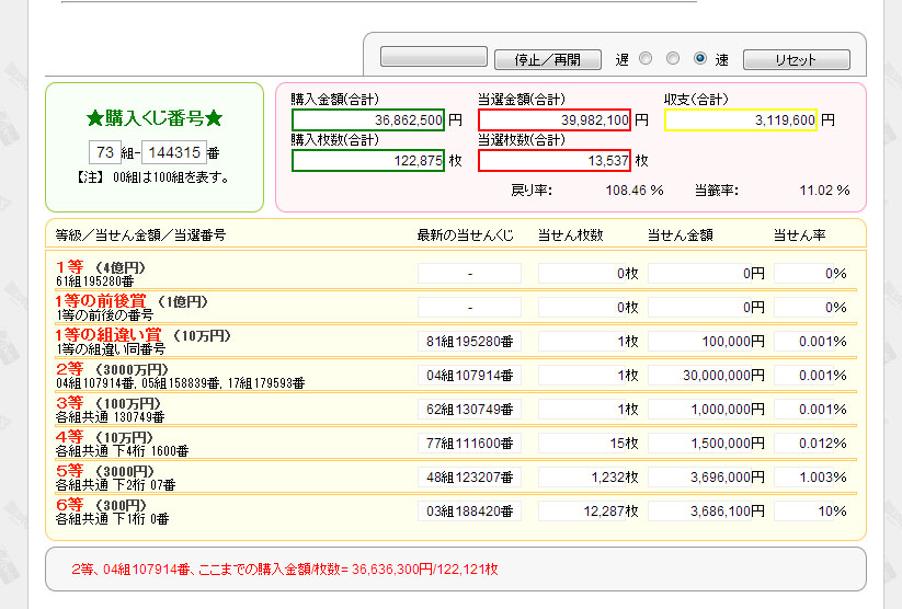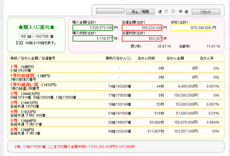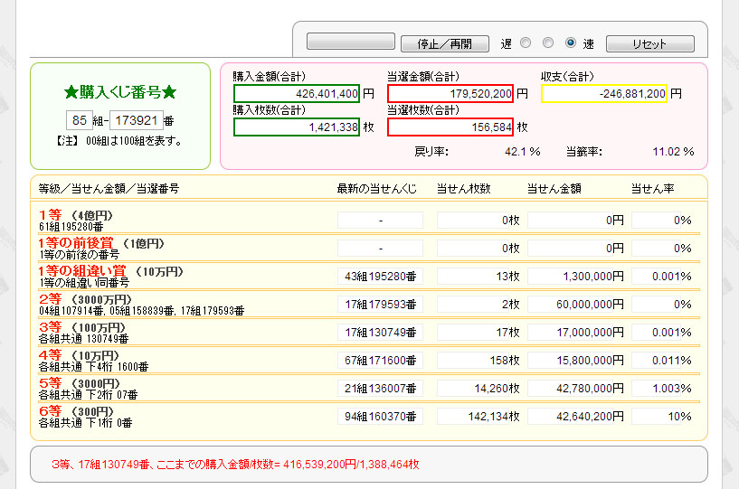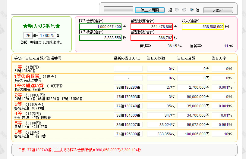 1等当選金と同等の4億円分を購入した結果がこれ・・・・