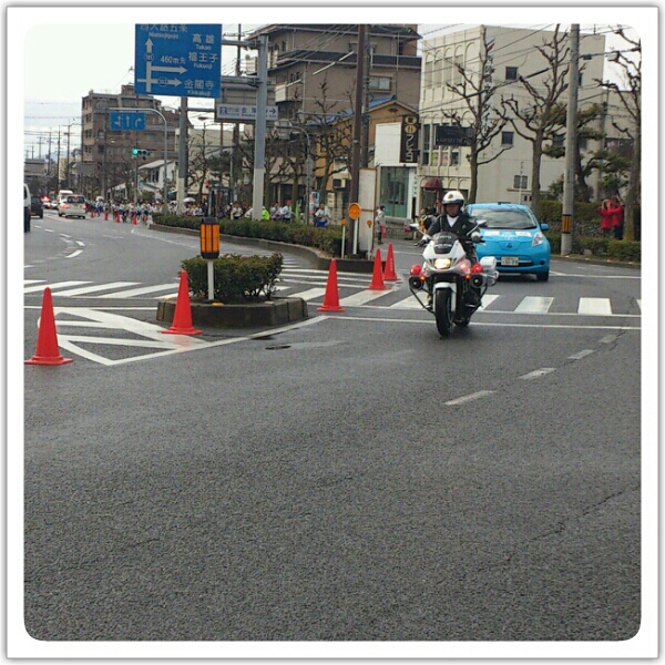この大会は、小学生の大会とはいえ高校駅伝や都道府県駅伝同様に公道を走るので、白バイに先導されてのレースです。