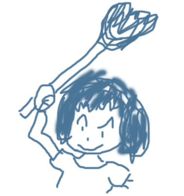 手にしているのは、ほうき。