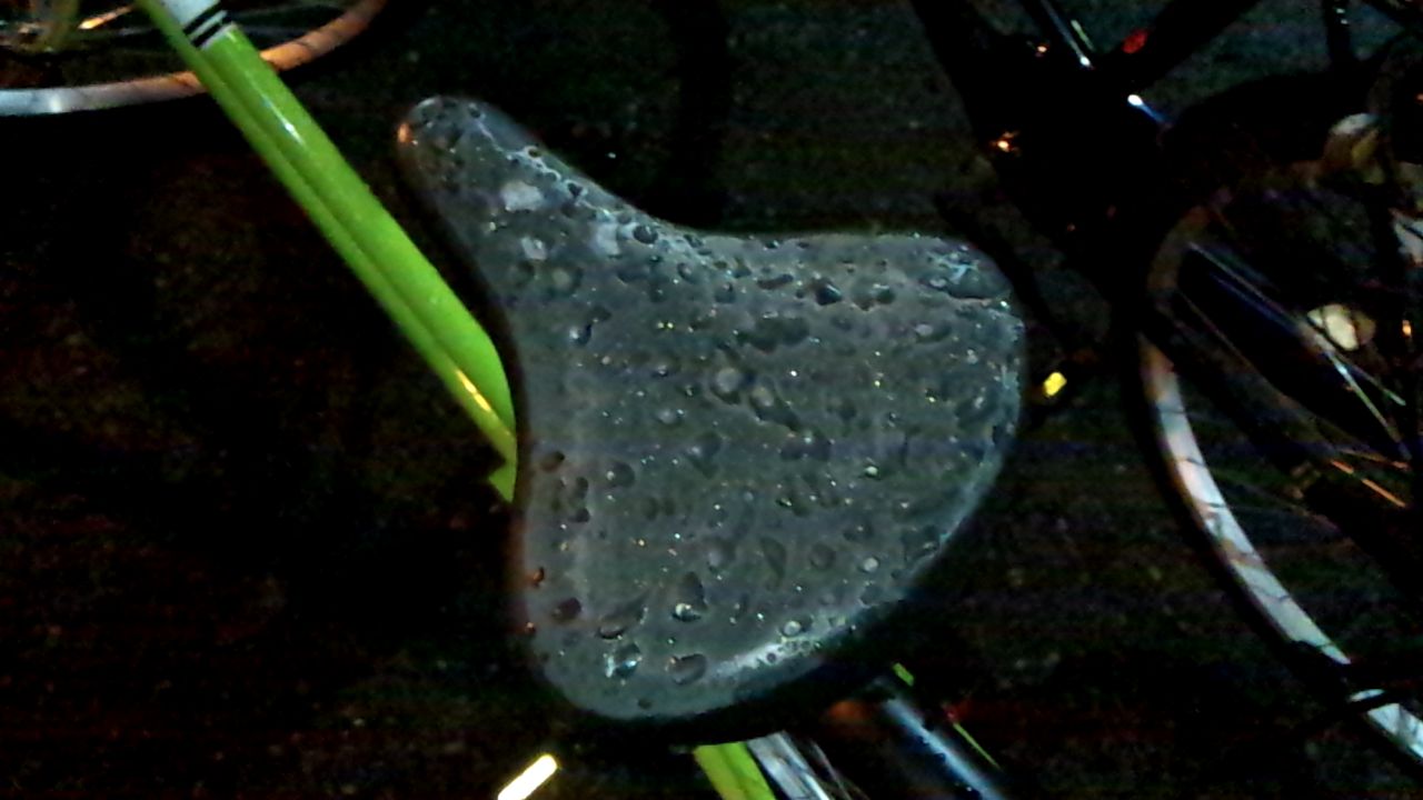 サドルに付いた水滴が凍ってるので中々とれないんですね(笑
