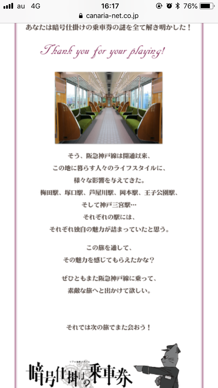 謎解きゲームは始めてなので、時間制限とか脱出とかプレッシャーのかかるのは避けて、ゆったりのんびり列車を使って暗号を解くのにしました。