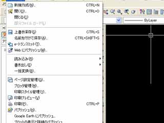 AutoCAD Civil3D 2008のファイルメニューに「Google Earthにパブリッシュ」という項目が追加された。