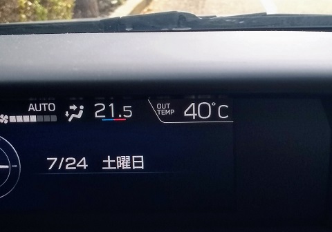 クルマに乗ってたら外気温40℃などと表示されまして、個人的に今シーズン最高記録なので助手席の娘に写真を撮ってもらいました。