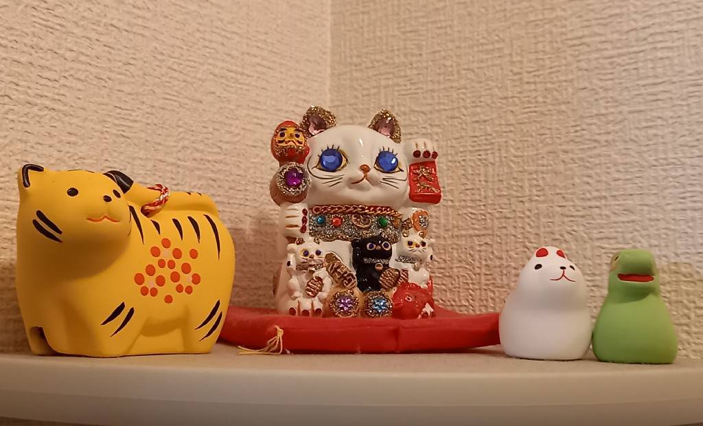 玄関に今までに頂いたり買ったりした置物を置いているので、一緒に飾りました。