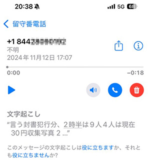 先日私のiPhoneもその機能が発動していたらしく、留守番電話の内容が文字起こしされていました。