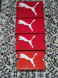 この写真は、すこし前に買った家族4人分の靴箱でございます。