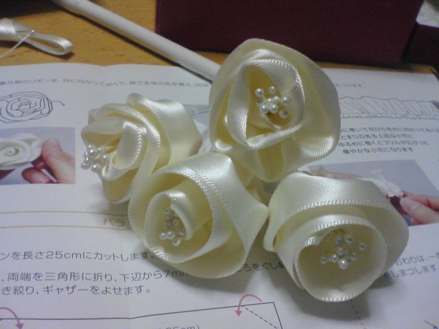 ひさ~しぶりに、お裁縫しました。 ← リボンで作ったバラです。 意外と難しくて、1個作るたびに休憩&マッサージ・・・ で、こちらが完成品です。 日をまたいで、何やかんやで7~8時間かかったでしょうか。 腰にきましたー 何かわかりますかねぇ。 プレゼントなので、心をこめて作ったはずが、 よくよく見ると、けっこうアラが目立ってしまったのは内緒です・・・
