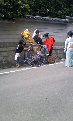 ここで、上の写真。お二人は神社界隈を人力車でお散歩とのこと。