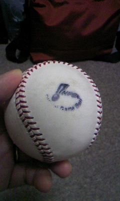 とっさに立ち上がり(座ってたんや!)、席の上にあった球を拾い上げました。