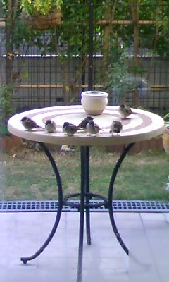 何ヶ月前でしょうか忘れましたが家内が庭先で数羽のスズメに米粒をあげた事から始まりました。