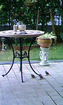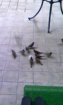 これは朝の忙しい時にも拘わらずスズメが待ちきれず催促している写真です(笑