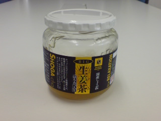 暖かい日が多く冬らしくない今日この頃でしたが、来週はまた寒くなるようですね。 ”生姜茶”を用意しました。 ご存知かとは思いますが、スプーン一杯をあつ~いお湯で溶かして飲んでください。(そのまま食べても、パンに塗っても美味しいかな?ま、食し方は自由ですけれど。) 冷えた体にとってもいいかと思います。 のどにもよくて美声になります(?) 風邪・インフルエンザ予防にもなるはずです。 冷蔵庫の上段に置いてますので、よろしければご賞味ください。