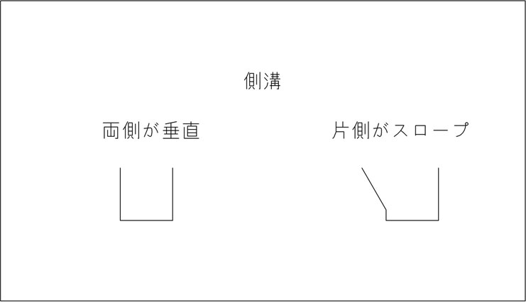 今までは、両側垂直の側溝が主流だったのが