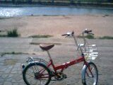 ママチャリでも、ましてやスポーツサイクルなんてものでもなく、単なる折り畳み自転車でございます。